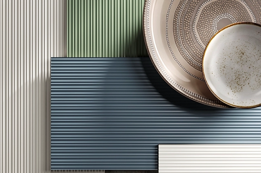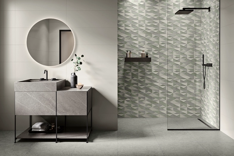 Imitant tour à tour le bois, la pierre, les carreaux de ciment, le béton, le marbre, le papier peint, etc., le carrelage passe maintenant à la 3D, en reprenant, en relief, une multitude de formes géométriques : cubes, pyramides...mais aussi des ondulations, des tressages, des arabesques, des volutes…