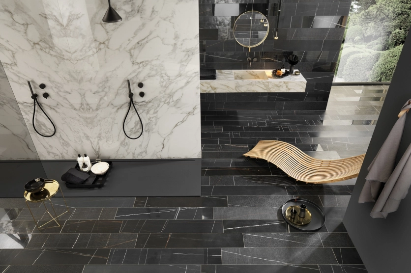 Le carrelage SENSE signe quatre décors qui reflètent l’extraordinaire intensité des marbres les plus raffinés. Les modules 120x120 cm favorisent le mouvement en les projetant vers la continuité et l’harmonie.