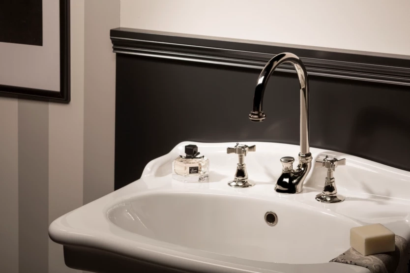 Daytime est une collection de mélangeur de lavabo, bain et douche destinée aux amoureux du style Anglais. Les coloris bronze brossé et or sont mis à l'honneur.